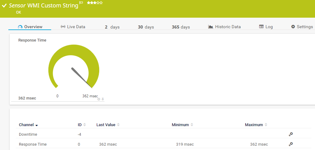 The WMI Custom String sensor performs a custom string query via Windows Management Instrumentation (WMI).
